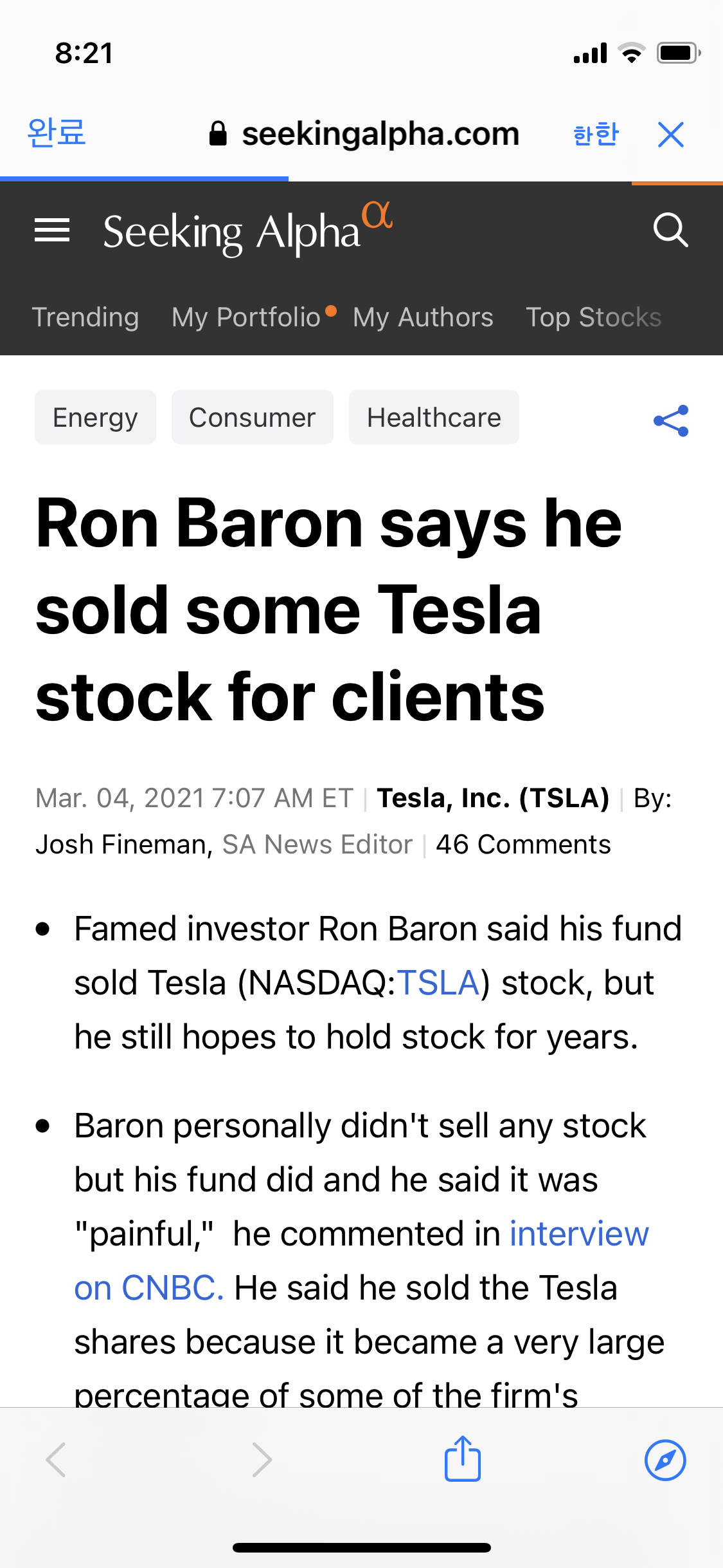물론 풀매도는 아니고 일부 매도긴 한데, 이분 전체 포트 회전률을 생각하면 확실히 테설라 주식이 고가라고 생각하는 건 확실한 모양입니다. 0