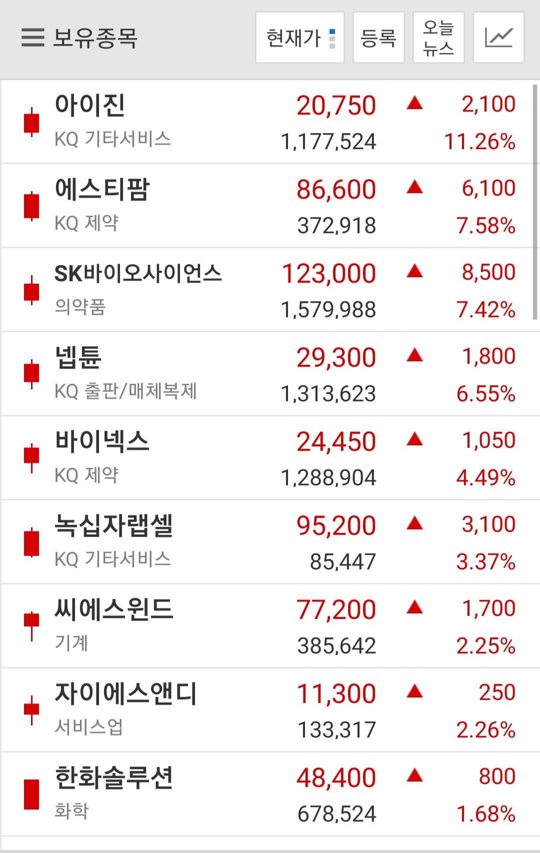 들고있는 바이오들이 다 올라서 화들짝 놀라 찾아보니 제각각이긴 하지만 공통테마는 코로나 백신개발 관련 소식들이네요. 뭐 정부에서 예산이라도 투입한다는 소식이라도 있는건지... 하여간 일제히 올라서 기분좋게 분할매도하고 있습니다. 이 돈으로 한화시스템이랑 카카오게임즈 사야지~ 근데 제 포폴보니 미친듯이 공격적이네요. 041찍던 너구리 제이스급인듯... 0
