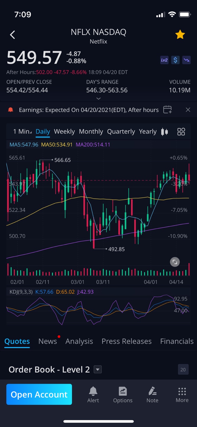 장 마감 후 넷플릭스의 실적 발표가 있었읍니다.