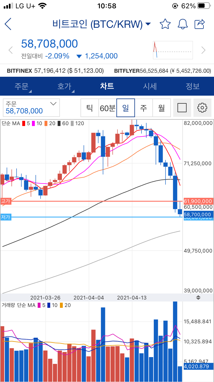 올라갔다가 떨어지는게 마치 폭포수 커브.... 이게 한두달사이에 벌어지는 일이라는 게, 건전한 조정단계(...)라는게 정말 살벌하네요. 이판에서 큰돈 만지신분들 ㄹㅇ 존경.. 0