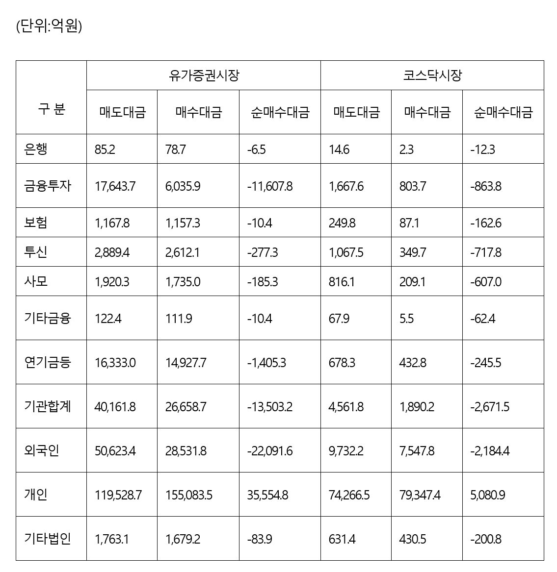 Subject   개미, 오늘 하루 주식 4조 순매수…역대 4위