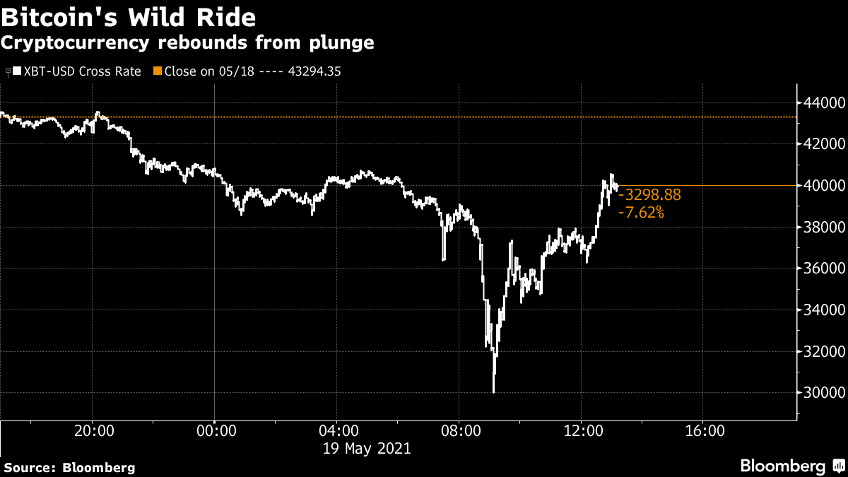 Cathie Wood, Still a Bitcoin Believer, Sees It Going to $500,000 -Head of Ark remains bullish on Bitcoin despite latest plunge -Prospects for Bitcoin ETF approval have now increased: Wood https://www.bloomberg.com/news/articles/2021-05-19/cathie-wood-still-a-bitcoin-believer-sees-it-going-to-500-000 Cathie Wood Buys Tesla Amid Musk Bitcoin Spat, Burry Shorts -Ark ETFs added shares of carmaker for first time since April -Musk and Ark are at odds over Bitcoin’s environmental impact https://www.bloomberg.com/news/articles/2021-05-19/cathie-wood-buys-more-tesla-amid-musk-bitcoin-spat-burry-shorts 머스크 '비트코인 계속 보유' 시사했지만…가상화폐 속락 https://www.yna.co.kr/view/AKR20210520015000091 스피커가 큰 사람이 나서니 시장이 반응하는군요. 최근 저항선이라고 했던 4만불 위로 회복(?)되었습니다. 그리고, 다시 내려가는데, 어디서 멈출지?? 미국 시간으로는 아침에 31% 내렸다가, 오후에 33% 올라가는 엄청난 변동성. 지금은 커피출레이션 페이즈(체념성 투매 시기, 항복하고 내던지는 시기)라고, 시장이 감정적일 때 바닥은 모른다고 하면서도, 한편으로는 그때가 어떤 자산이든 사기 좋은 시기라고 하면서 비트코인이 친환경 재생 에너지 등과 결합되면 미래가 밝다고 했습니다. 오히려 조정이 되어서 미국 당국의 ETF 승인에는 좋다고?? 50만불이 되는 시기에 대해서는 밝히지 않았습니다. 0