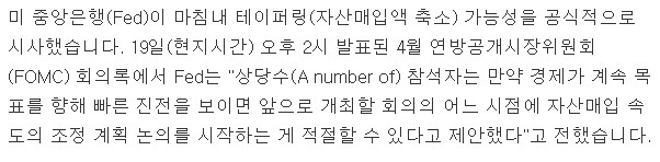 Subject   FED 4월 FOMC중 테이퍼링 시사..