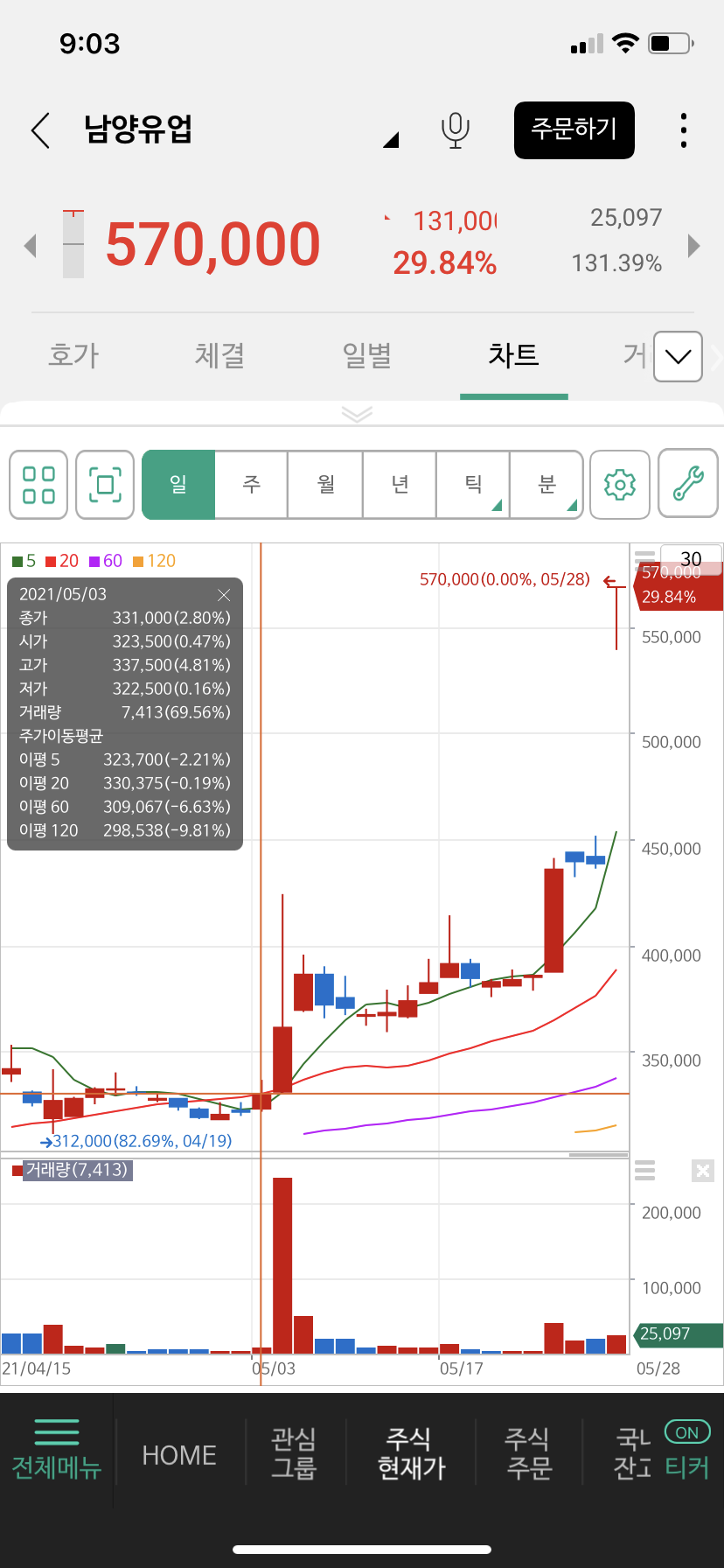 | Subject | 남양 바로 상한가 찍네요 |