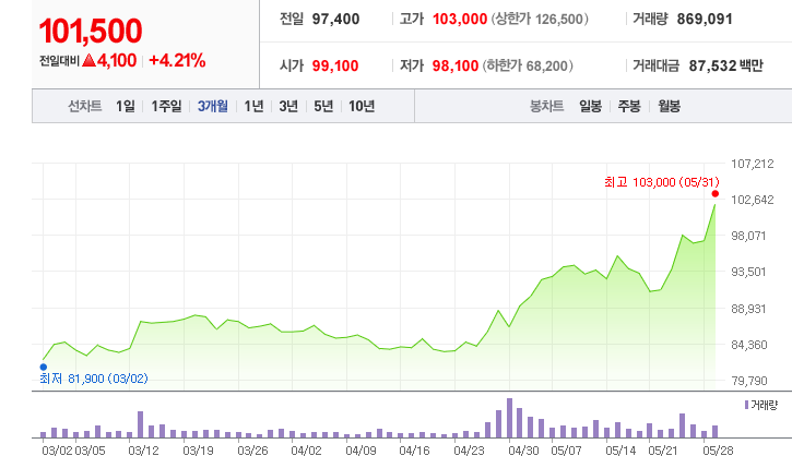 하는 도중에 결국 떡상하네요 8만원대는 몰라도 9만원대에서 고민이 많았는데... 10만원대에서 지금이라도 사야하나...쿨럭;;; 0