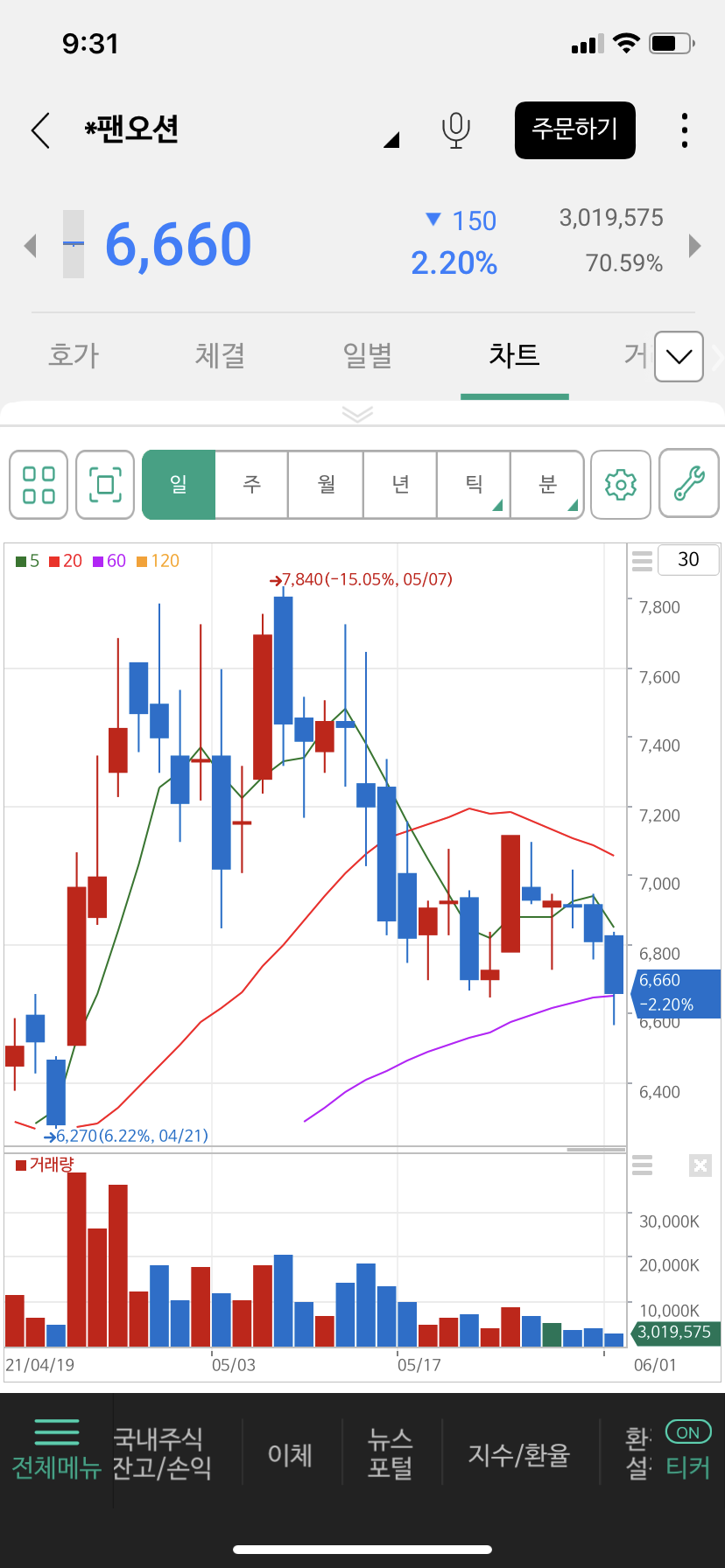 팬오션은 왜 내리냐...
