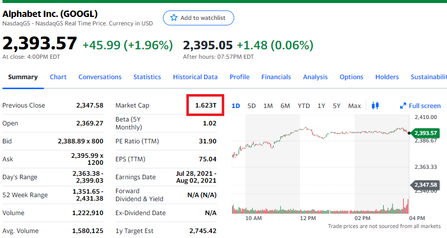 구글이 아마존의 시총을 제치고 전체 전투서열 3위가 되었읍니다. 0