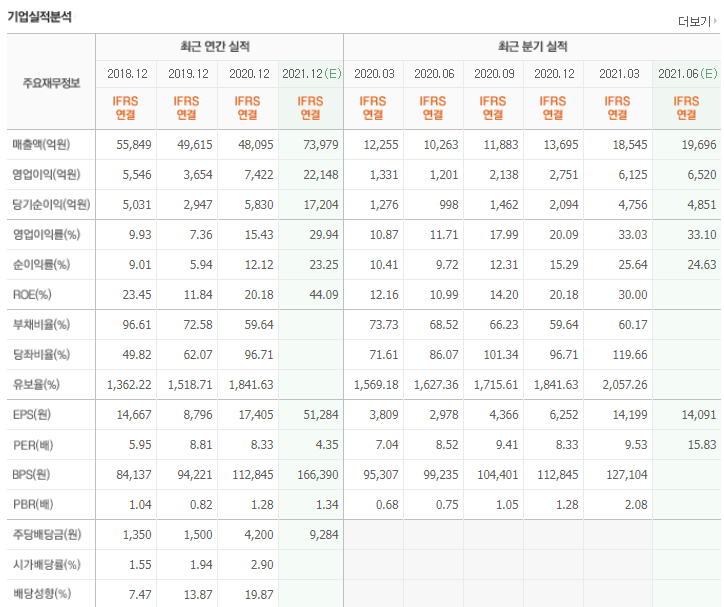 올해 업황이 좋아진 종목. 덩치가 있긴 하지만 더 좋아질 종목같은데.. 3월기준 ROE 30%에 현재 per가 7.5 오늘 일봉상 볼린저 밴드 하단에 rsi 34. 1