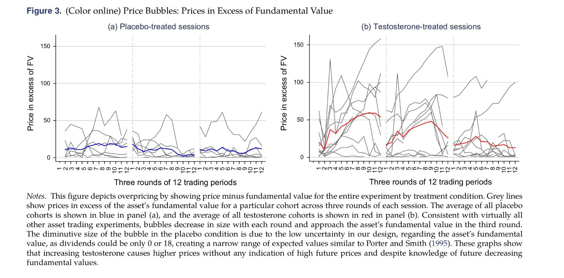 https://ora.ox.ac.uk/objects/uuid:9a5912bc-b74e-43ff-8944-3669c23e99bd *806-final.pdf 파일을 받으시면 됩니다. 2016년 연구입니다만, 재미로 보셔도 좋을 것 같습니다. 역시 호르몬이 문제야?! 전에도 여성보다 남성이 시장의 거품을 만들어낸다는 연구들이 있었습니다. 회색선이 높은 가격에도 사는 것을 보여줍니다. 파란색이 플라시보, 빨간색이 테스토스테론. 과감하게 못 사면 병원 가서 테스토스테론 치료를 좀 받아야 하나요? :) 이 연구는 영국에서... 2