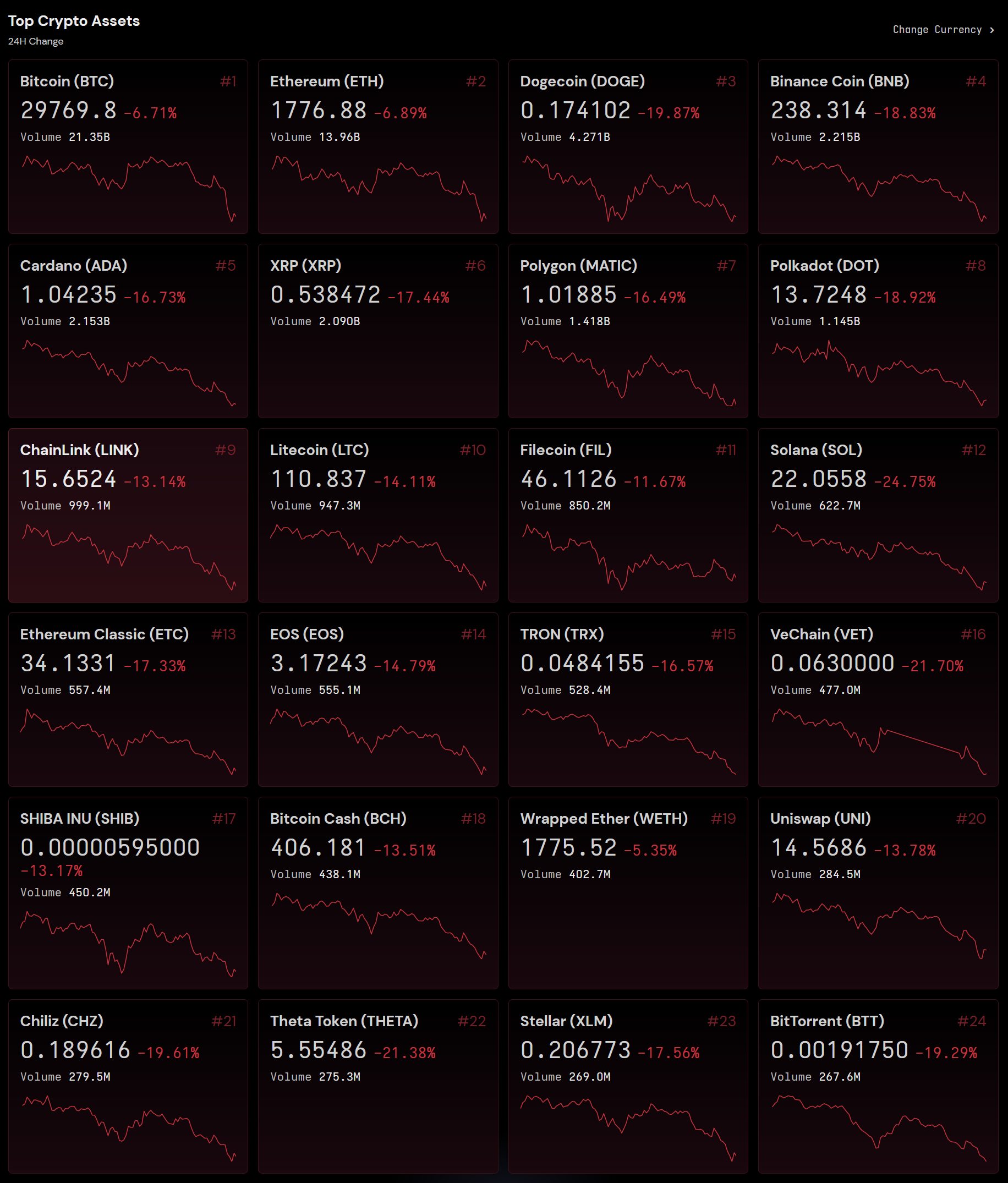 이런저런 이슈가 더해지면서 전에 많은 사람들이 예상하던 것보다 일찍 3만 불 선이 무너졌네요. 빨리 회복되지 않으면 추가 폭락할 수도 있다고. 이런 와중에 마이크로스트래티지는 21일에 평균 37,617달러에 비트코인 약 5,500억 원 어치를 추가 매수했다고 합니다. 마이크로스트래티지, 또 `물타기`…비트코인 5540억어치 더 샀다 https://www.edaily.co.kr/news/read?newsId=01505526629084344&mediaCodeNo=257 비트코인, 1월 이후 첫 3만달러선 붕괴…연간 마이너스 전환(종합) https://m.yna.co.kr/view/AKR20210622173852085 0