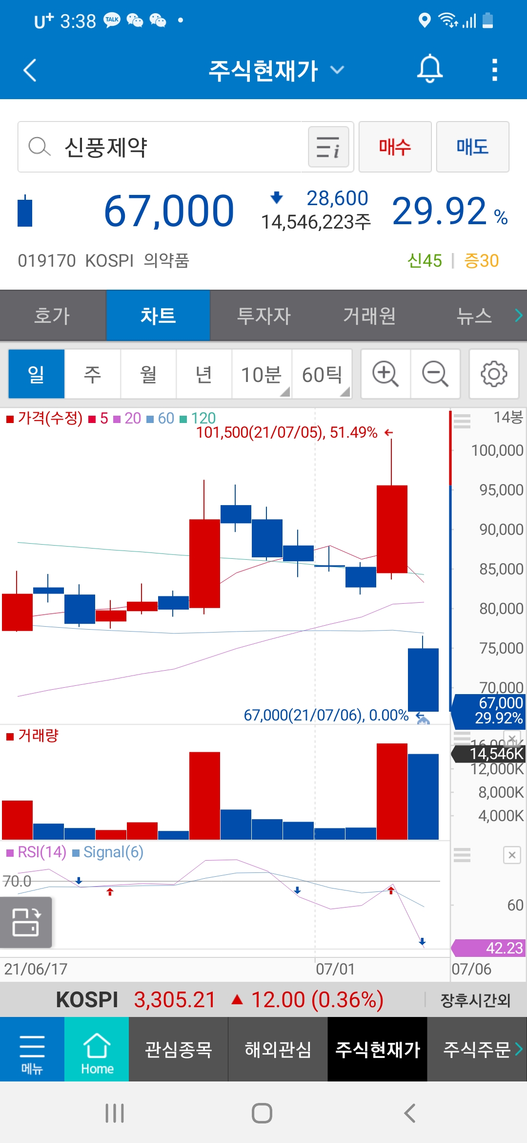 오늘 야수처럼 "이건 간다!" 생각하고 아침장에 잠깐 들어갔다가 이건 아니다 싶어서 딱 버스비만 벌고 후다닥 튀었는데 귀신같이 하락 하더니 결국...