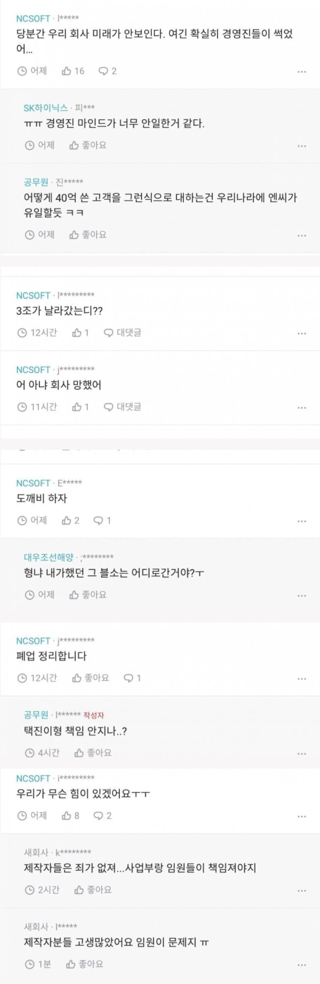 | Subject | 발등에 불떨어진 nc소프트의 공지 |