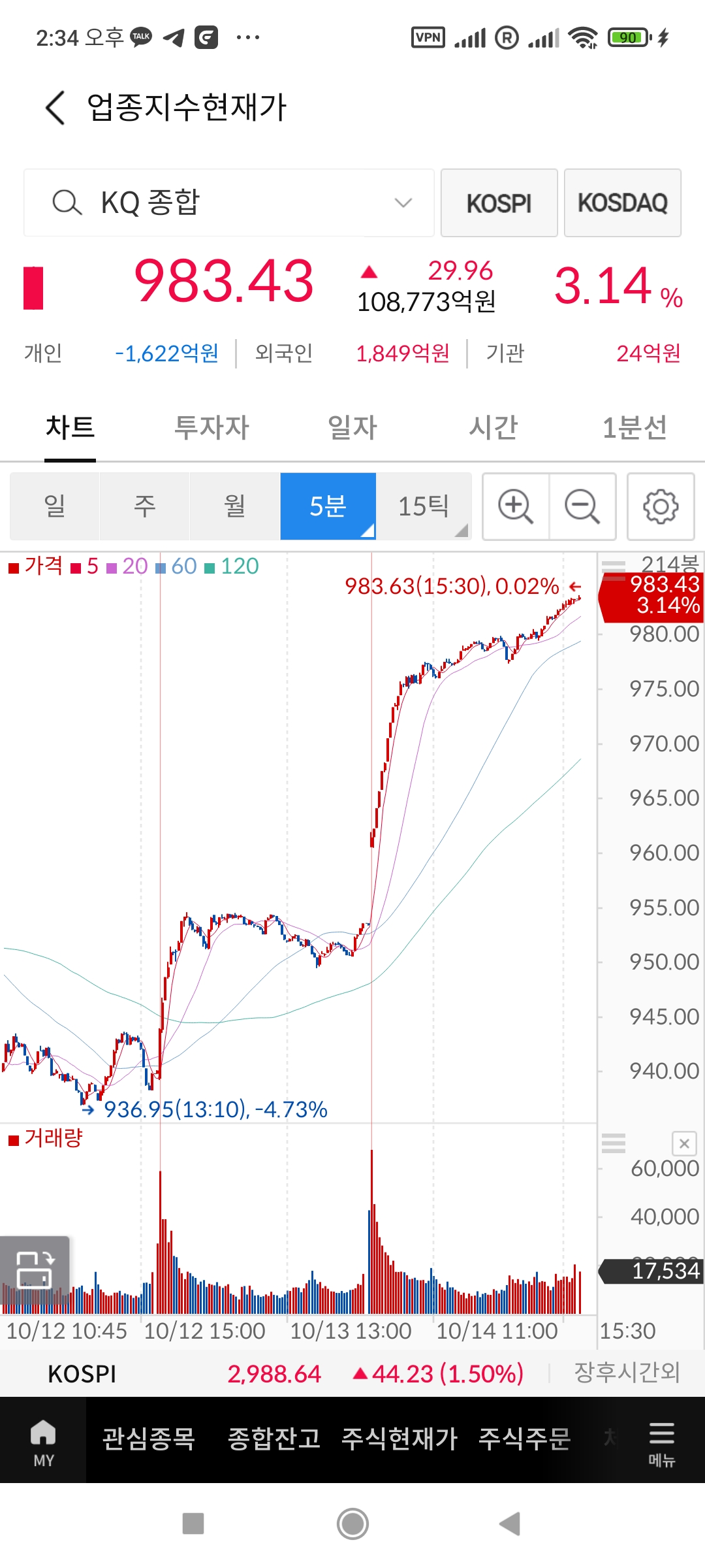 내려갈 때도 급히 내려가시더니 올라갈 때도 마음 급하신 것. 지수를 하루에 3프로씩 퍼올리네... 코리아세일페스타는 진정 끝난 것인가. 0