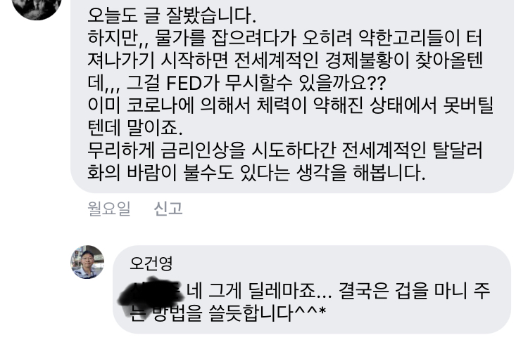 오건영님 페북 -  인플레이션, 금리 정책 관련