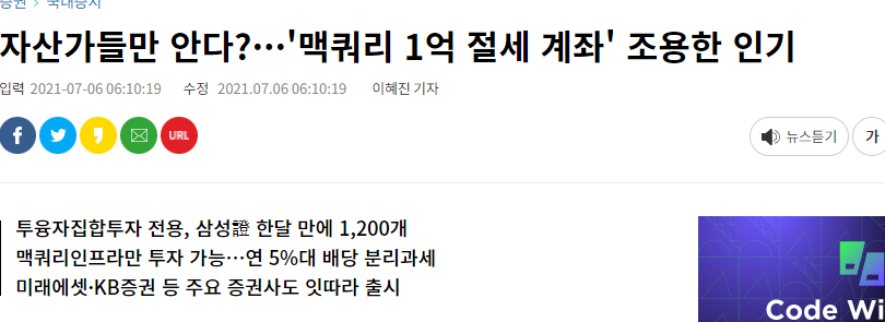 SOC 투자·절세 '맥쿼리 계좌' 관심