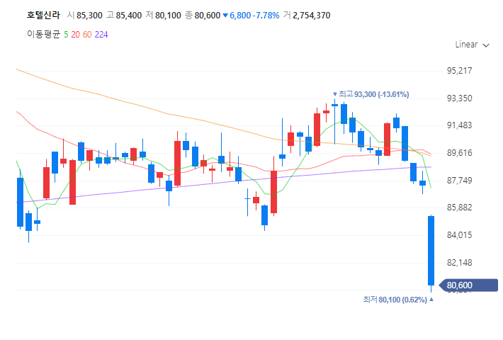 | Subject | 호텔신라 어닝쇼크로 폭락.. |