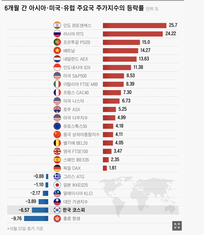 주식시장이 정말 무서운 것은, 어떻게든 키를 맞추려는 속성이 분명 존재한다는 것입니다. 물론 개별주들로 보면 아웃라이어가 있긴 하지만, 평균을 내면 그렇다는 거죠. 그럼 넌 왜 미장을 굳이 골랐냐? 하면, 어디서든 대체로 중상 이상은 하기 때문이라고 답하겠읍니다. 0