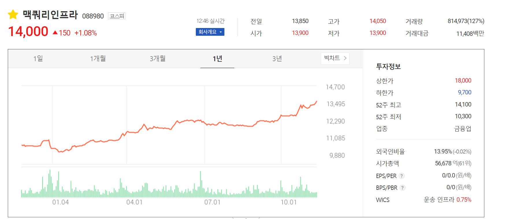 맥쿼리 14000 돌파 1