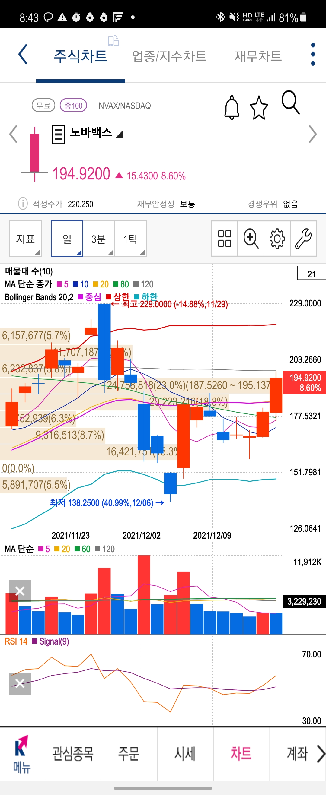 https://new.redtea.kr/stock/6236 예전에 쓴 이 추천글에 붙여, 12/16일 EMA승인 권고가 떴습니다. 사실 바로 승인이 떴을 거라 기대했는데, WHO랑 겹치면서 미뤄지는 바람에 예상보다 적게 상승했습니다. 그래도 170 밑에서 들어가셨으면 15%정도 드셨을 것 같네요. 하지만 여전히 리스크는 상존합니다. Novavax COVID-19 vaccine could get EU approval next week - FT https://www.reuters.com/article/us-health-coronavirus-europe-novavax/novavax-covid-19-vaccine-could-get-eu-approval-next-week-ft-idUSKBN2IV27U 해당 기사와 위 글 내용 참고하세요. https://cafe.naver.com/likeusstock/518932 2