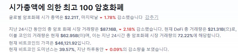 전일 미 증시가 탑 시총 기업을 중심으로 상승폭을 보여준 것과 달리 크립토 씬은 비트가 4.6K선을 터치하려는 모습을 보여주며 약세를 보이고 있습니다. 연말에 짧은 상승이후 다시 하락하는 모습을 보여주는데요. 크립토가 타 자산과 명확한 상관관계가 없다보니 파악하는데 어려움이 있습니다만 개인적으로는 지난 2021년에 더불어 2022년에는 비트를 포함한 암호자산들이 더욱 확대될 것으로 전망하고 있습니다. 저점 지지형성 후 반등하며 비트가 달리고 이어서 알트들이 큰 폭으로 상승하며 따라잡을 것으로 예상하는 바 매수를 조금씩 시작해보려 합니다. 0