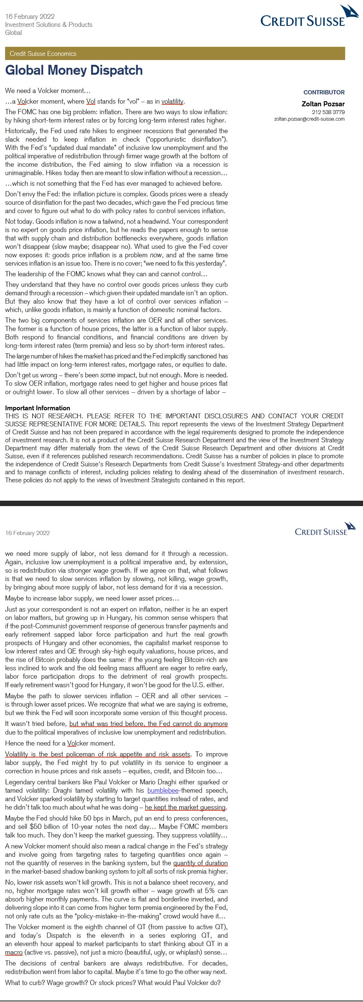 Subject   Fed는 볼커 스타일 충격요법이 필요하다.