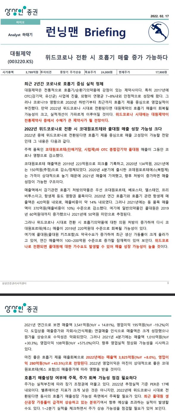https://www.yna.co.kr/view/AKR20220218125900017 http://www.sangsanginib.com/stocksView.fn?sgrp=S01&siteCmsCd=CM0001&topCmsCd=CM0004&cmsCd=CM0079&pnum=3&cnum=4&ntNo=2658&dvsn=&sdt=&edt=&src=STOCK_NM&srcTemp=%EB%8C%80%EC%9B%90%EC%A0%9C%EC%95%BD&currtPg=1 조금 과장된 것도 같지만, 최근 며칠 동안 약국을 여러 군데 방문해보니 확실히 감기약 판매가 늘었다고 하더군요. 코로나19 덕분에(?) 전반적인 위생/방역 의식, 수준이 올라가서 덩달아 감기도 힘을 못 쓴 것 같은데, 위드 코로나 되면서 감기약이 살아날 수 있을까요? 0