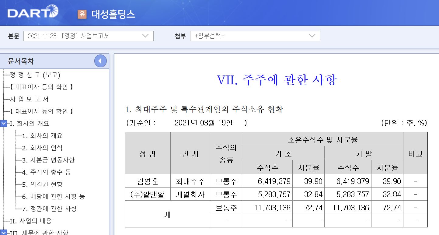 셋째가 독립한 그룹이 대성홀딩스그룹;대성그룹(구 대구, 경북 도시가스 등), 둘째가 독립한 그룹이 서울도시가스그룹입니다. 아직 완전히 지분이 정리되지는 않았습니다. 올해 대성홀딩스 배당은 아직 공시가 안 되었군요.