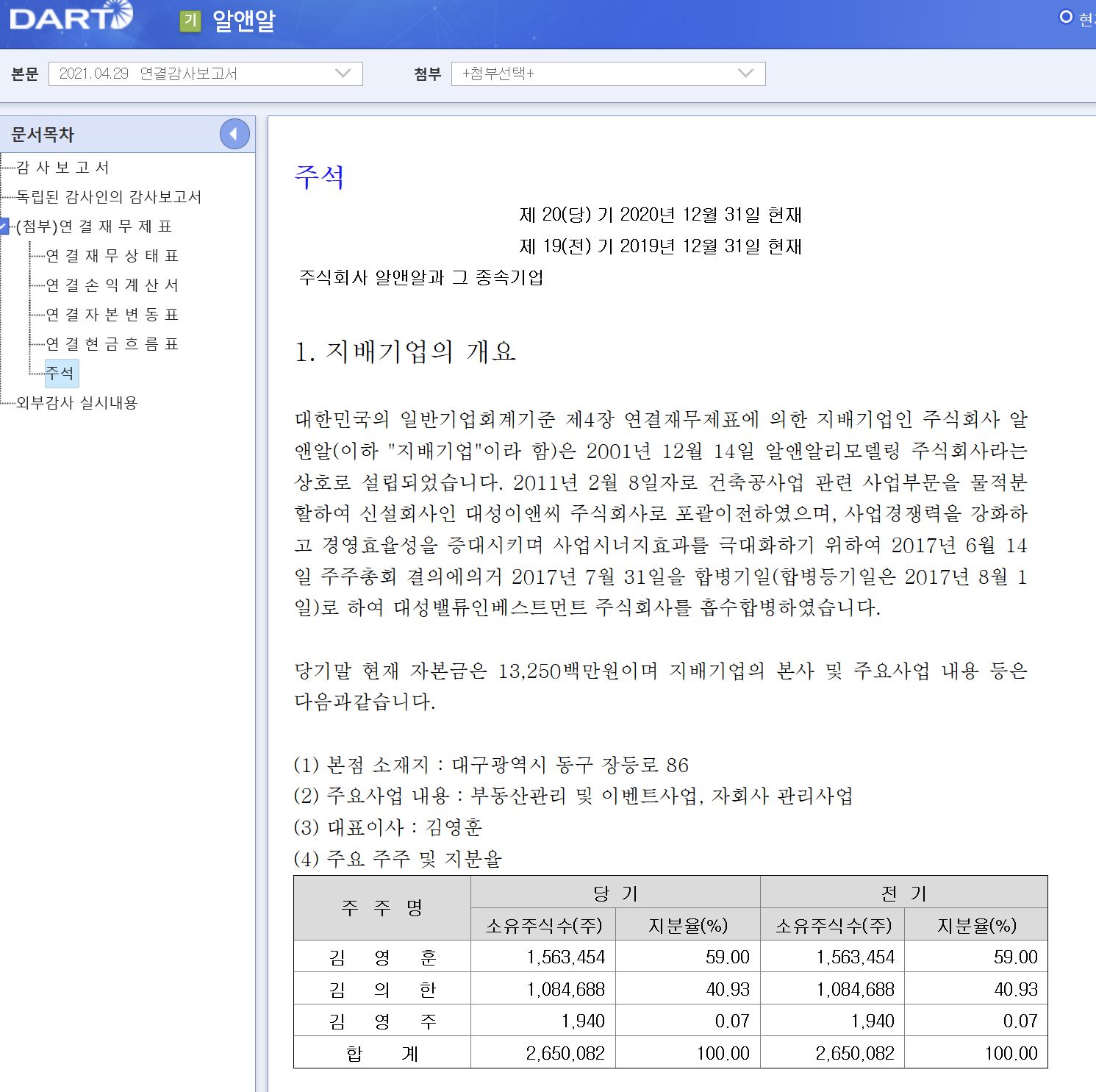 대성홀딩스 그룹 내에서 3세 지분 승계를 위해 만든 것이 알앤알이었습니다.