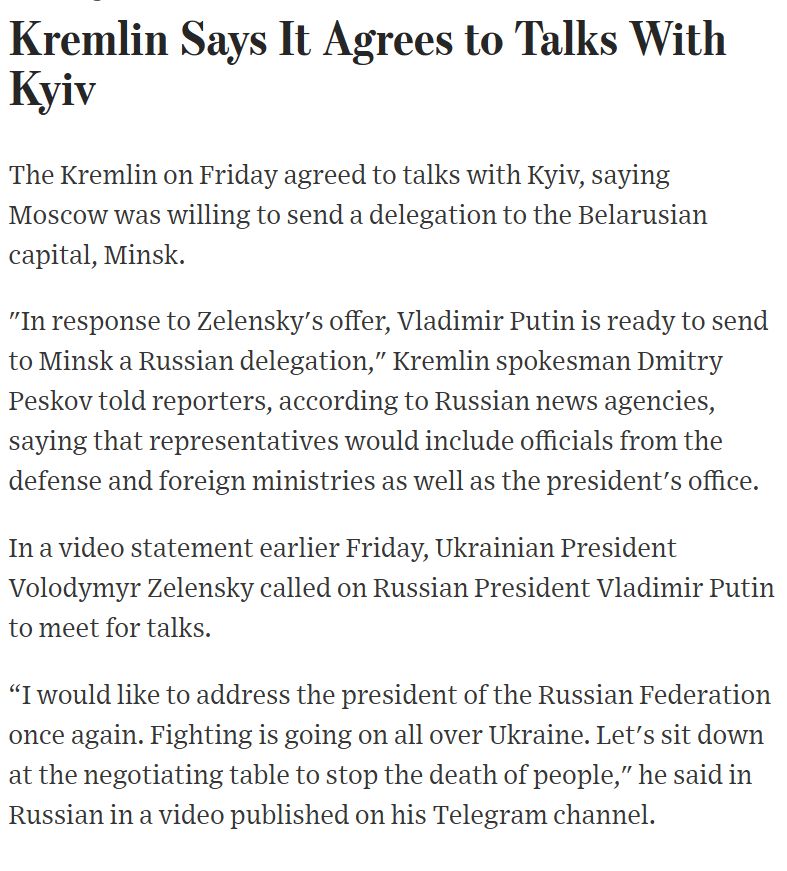 https://www.wsj.com/livecoverage/russia-ukraine-latest-news/card/kremlin-says-it-agrees-to-talks-with-kyiv-a4ooBbj6J9zQNiBepBZ4