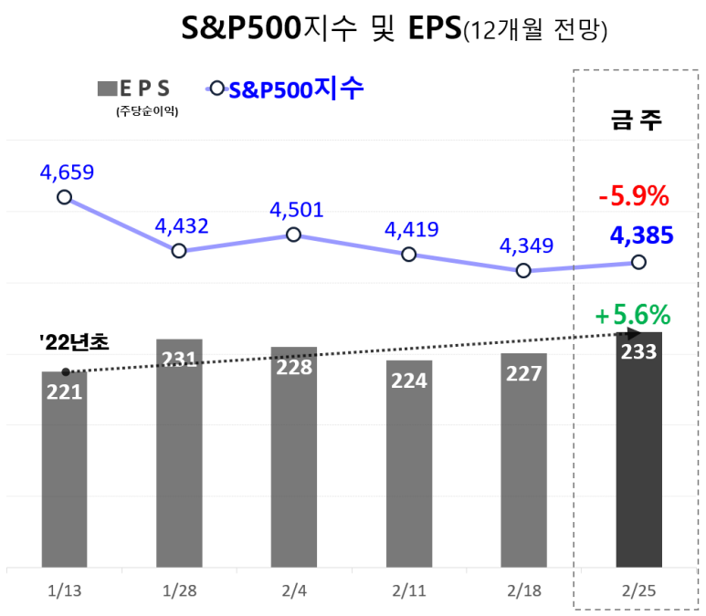 2022년초 부터 금주까지 S&P500지수와 EPS 현황을 보면,