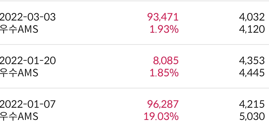 연간기준 계좌 양전. 1월 3일 종가를 100으로 놓았을때 이제 100.5 쯤 왔네요. 물론 작년말에 얻어맞은 게 있기 때문에 아직 MTS는 파랗읍니다. 코스피야 이제 꽃길만 걷자. 0