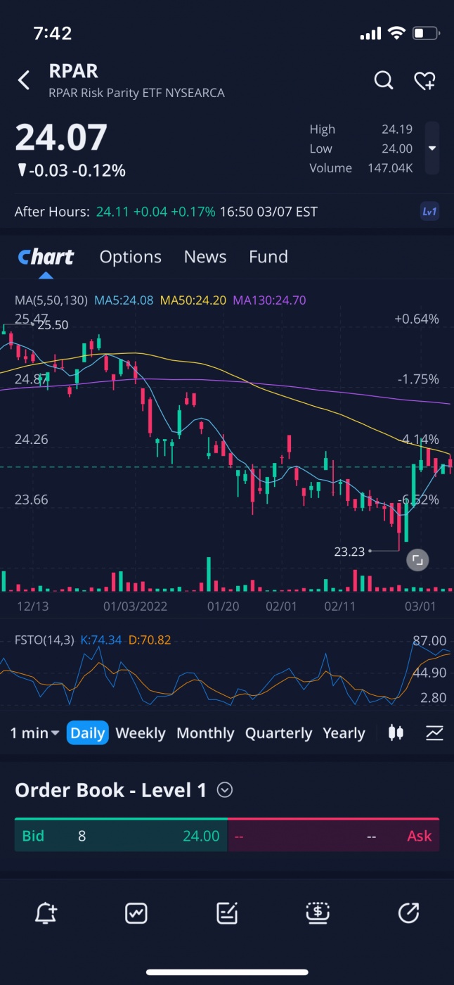 https://youtu.be/Qs4yodRd2kQ 레이 달리오의 올 웨더 전략을 '최대한 유사하게 따라가려고 노력하는' ETF입니다. 뜯어본 사람들이 실제로는 좀 다르다고 비판을 많이 합니다만, 어차피 자산 배분은 그 자체가 느리건 빠르건 리밸런싱을 항상 해야 하는 과정입니다. 그리고 적어도 하락장에서의 방어는 충분히 제공하고 있습니다. 강환국 씨는 대부분의 주식투자자들의 베타 포트폴리오로 올 웨더를 권장합니다. RPAR을 콕 찝어 언급하지는 않았읍니다만, 가장 적은 돈으로 가장 비슷하게 따라할 수 있는 전략은 이것이 유일합니다. 올 시즌스만 해도 따라하려면 천만원 넘게가 최소투자자금이니, 매달 사시려면 이게 낫지요. 단점은, 잠 옵니다. 주식에서 재미를 느끼시는 분은 시도조차 하지 마십시오. 공인 수면제도 아니고 마취제에 가깝읍니다. 그리고 일반 주식과 동일한 수익률은 절대로 아닙니다. 4-8퍼의 연평균 기대수익률과, 투자 포트폴리오 중에서는 굉장히 강력한 방어력을 보여주는 편의 포트라 생각하시면 됩니다. 4