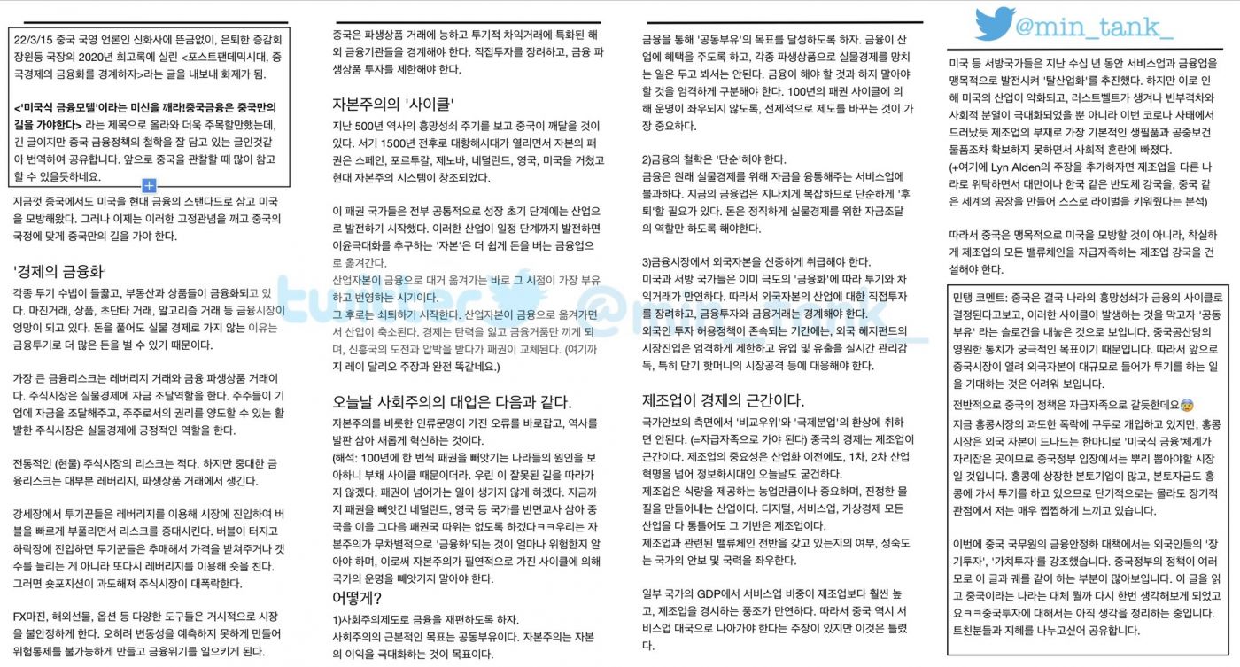 얼마 전 화제가 되었던 20년도 증감회 국장 회고록 한글 번역본입니다. 출처는 짹짹이에서 활동중이신 민탱(@min_tank_)님.