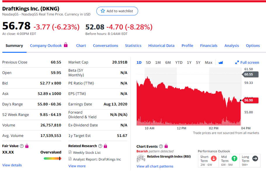 최근 로빈후더들 최대 관심주로 뽑혔던 드래프트킹즈(DKNG)가 월요일에 52$ 3200만주 Public Offering, 쉽게 이야기해서 유상증자를 때려버리면서 주가가 아주 개박살이 나고 있읍니다. 한동안 헤멜 듯하네요. 그런데 스포츠베팅업 자체가 워낙 핫하다보니 저것도 조만간 씹어먹을 거같은 기분이. 2