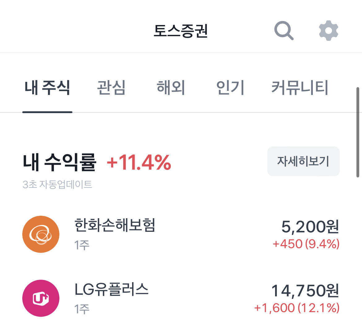 본 주식계좌는 녹고있는 와중에 토스증권 픽은 10%이상을 수비중 1