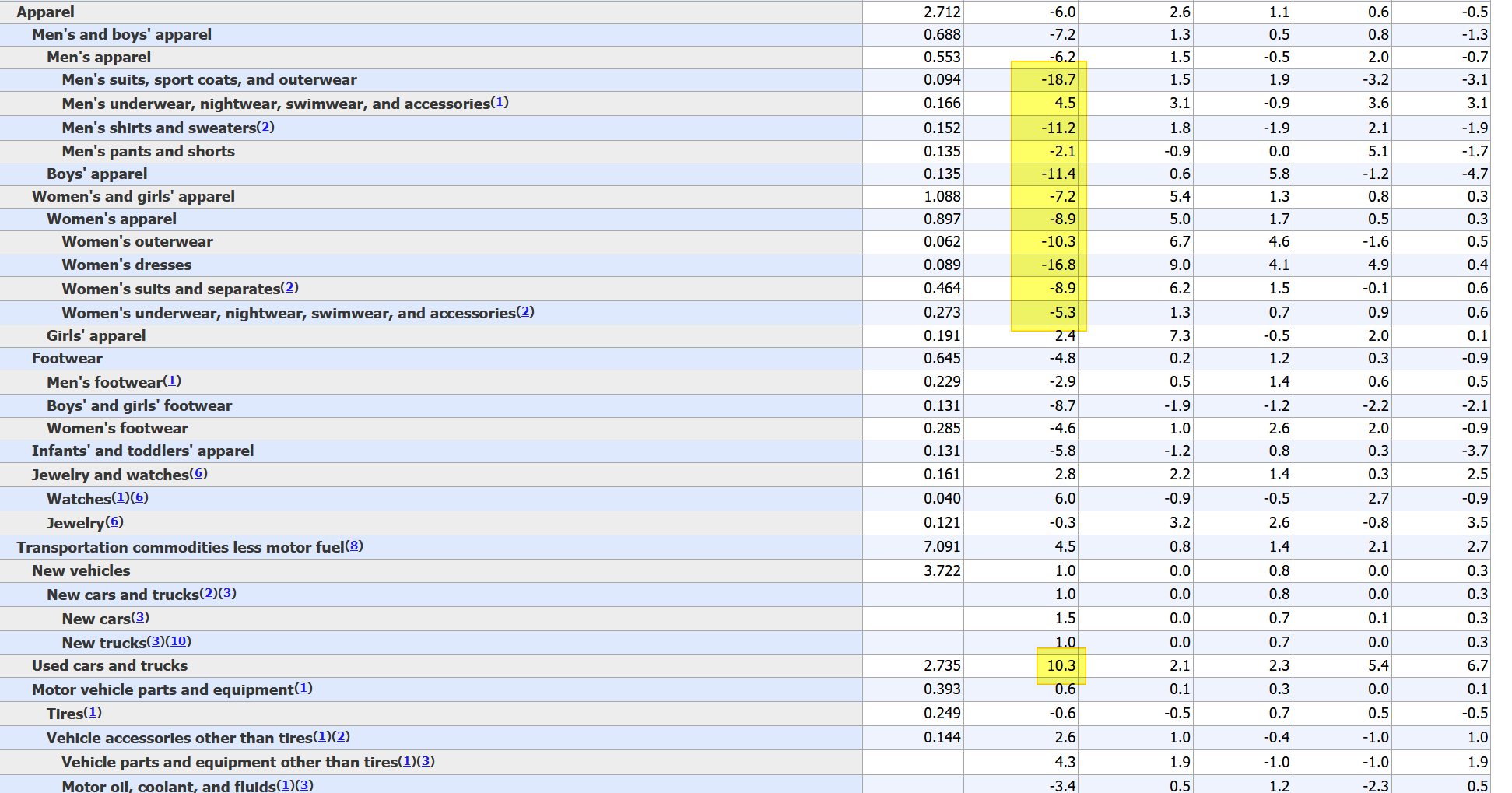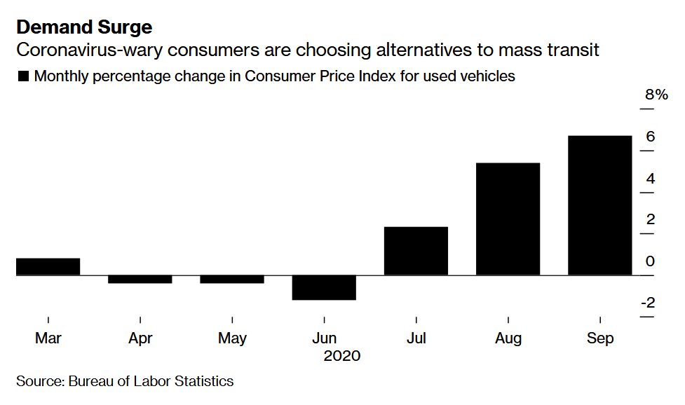 확실히 정장을 비롯해서 회사에서 주로 입는 옷들 소비(가격)는 줄어들어서, 회사에 나갈 일이 늘어나지는 않은 것 같습니다?! 중고차 소비(물가)가 늘어난(높이진) 것도 재확인. https://www.bls.gov/news.release/cpi.t02.htm 미 9월 소비자물가 0.2%↑…오름세는 주춤 https://www.yna.co.kr/view/AKR20201013185300072 3