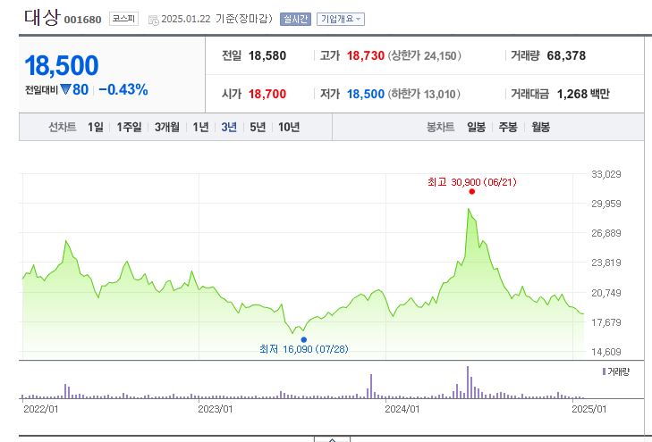 요즘 눈에 띄는 건데요. 어르신들 있는 집에서 이미 '대상 뉴케어' 제품들을 먹고 있는 분들이 많아진게 보입니다. 10년 전만해도 보통 식사가 불충분하거나 불가능한 암환자, 경관 식이가 필요한 환자들에게 처방? 을 해주거나 식사 대용으로 권유하고 했는데, 최근에는 단백질 보충? 에 대한 필요성을 느꼈는지, 뉴케어를 아냐고 하면 모르는 사람이 없고 다들 먹고 있는겁니다? 그리고 뉴케어도 흐름에 맞춰서 다양한 라인업을 만들어 내고 있는게 보여서 주가를 보는데... 24.6월에 대체 무슨 일이 있던거죠??? 4